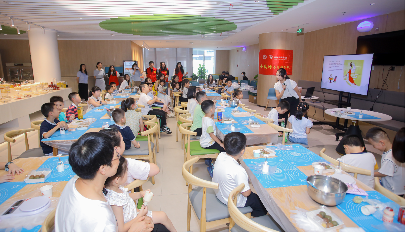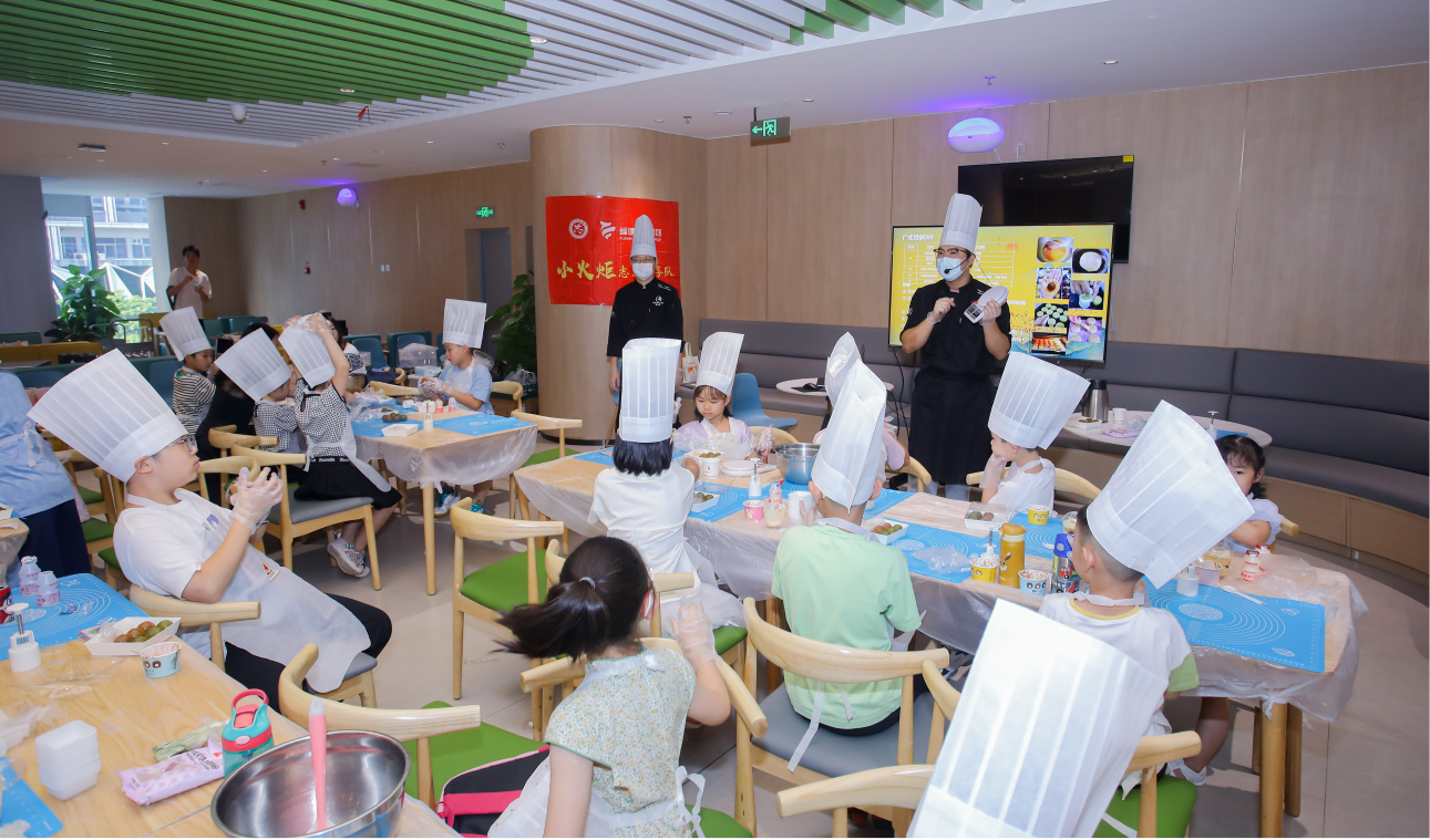 经糕点师傅的讲授,小朋友们学习了传统广式月饼、冰皮月饼的制作方法,并在“小火炬”志愿者哥哥姐姐们的带领下自己动手制作月饼。经过一番尝试与实践,一枚枚口味丰富、造型精致的月饼在小朋友手中不断呈现。他们还将亲手制作好的月饼送到各部门职工手中,分享美味,送去中秋节美好祝福。